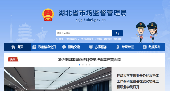 1.登錄湖北省市場(chǎng)監(jiān)督管理局的官方網(wǎng)址:http://scjg.hubei.gov.cn/
